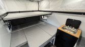 Main bed can be queen or king. Upper bunk can be single 24" or double 48". Optional front shelf as bunk.